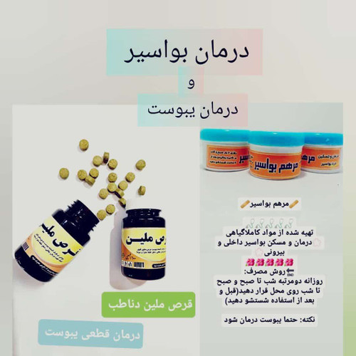 ⚜️قرص ملین و پماد بواسیر پک همورویید( رفع بواسیر داخلی و خارجی ) دناطب ⚜️ 🌱درمان بواسیر 🌱درمان شقاق 🌱درمان هموروئید 🌱بهبود التهابات و تورم 🌱کاهش درد 🌱رفع خونریزی 🌱بهبود زخم 🌱درمان سوزش و خارش ✅این محصول را باید با قرص ملین مصرف کنید ✅دوره درمان دو الی سه دوره 👌🏻کاملا گیاهی و با درمان هر نوع بواسیر ✅در صورتی که دفع شما بصورت یبوست یا معمولی میباشد در کنار پماد بواسیر حتما از قرص ملین استفاده کنید و در صورتی که یبوست شدید بود یا طی یک هفته استفاده از قرص ملین برطرف نشد روزی دو بار از قرص استفاده کنید. ♻️کاملا گیاهی و ارگانیک