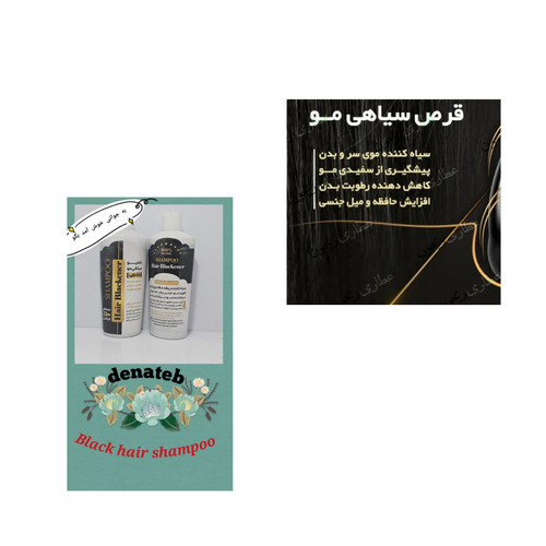پک دوتایی سیاهی مو اورگانیک🔳😍 شامپو و قرص سیاهی مو دناطب 😍🔳 جوابدهی فوق العاده خواص بی نظیر این شامپو 👇👇👇👇 🔥 *سیاه کننده ریشه و ساقه مو* 🔥 *سیاه کننده پیاز مو* 🔥 *نرم کننده* 🔥 *تقویت مو* 🔥 *ضدشپش* روش مصرف: قبل از مصرف شامپو را تکان دهید و مقداری از شامپو را روی کف سر بمدت۳٠ ثانیه ماساژ دهید و پس از ۱٠دقیقه با اب ولرم شستشو دهید 🔚طول دوره درمان 6 ماه