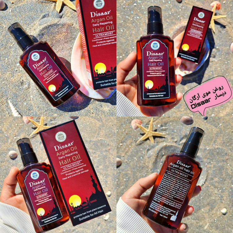روغن آرگان دیسار Disaar حاوی پروتئین ها و ویتامین های غنی برای بهبود موهای خشک یا ضعیف است. همچنین به ترمیم و مرطوب سازی موهای شکننده و آسیب دیده کمک می کند. این روغن یک محیط مغذی و راحت برای رشد موهای شما ایجاد می کند و باعث می شود موها نرم و براق شود.