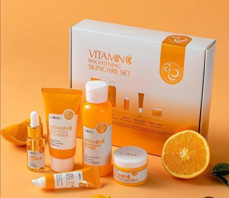 پک ۵ عددی روشن کننده ویتامین سی لایکو روشن کننده ضدلک ضدپیری مرطوب کننده آنتی اکسیدان تنظیم وترمیم رنگدانه های پوستی شوینده50گرم تونر100میل سرم 17میل کرم ژل دورچشم15گرم اسنس کرم 25گرم مناسب انواع پوست